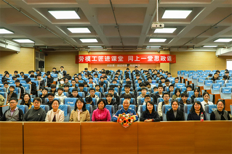 为弘扬新时代大国工匠和劳模精神,创新大学生思政课教学模式,激励学生以劳模工匠为榜样砥砺奋斗,10月30日上午,学校邀请享受国务院政府特殊津贴、“全国五一劳动奖章”“山东省道德模范”等多项荣誉称号获得者、日照港集团铁运公司机务段质检组组长徐玉金走进思政课堂为大学生讲授思政课。2025级智能网联、电气自动化、数控技术、智能轧钢技术等专业大学生聆听授课,思政部教师参加活动。